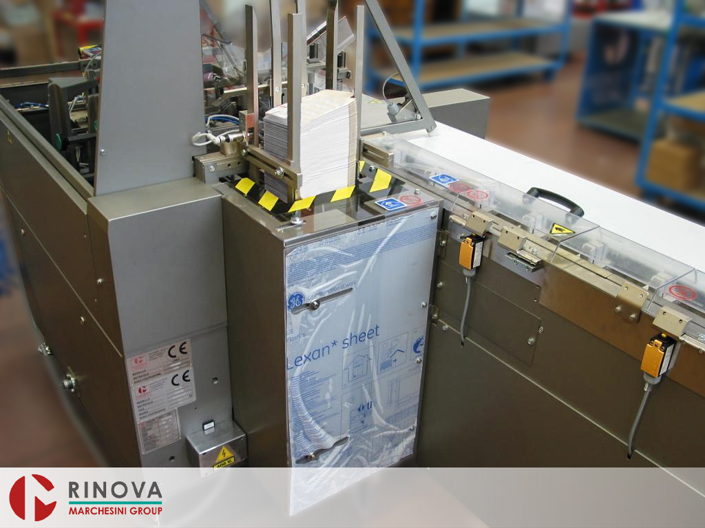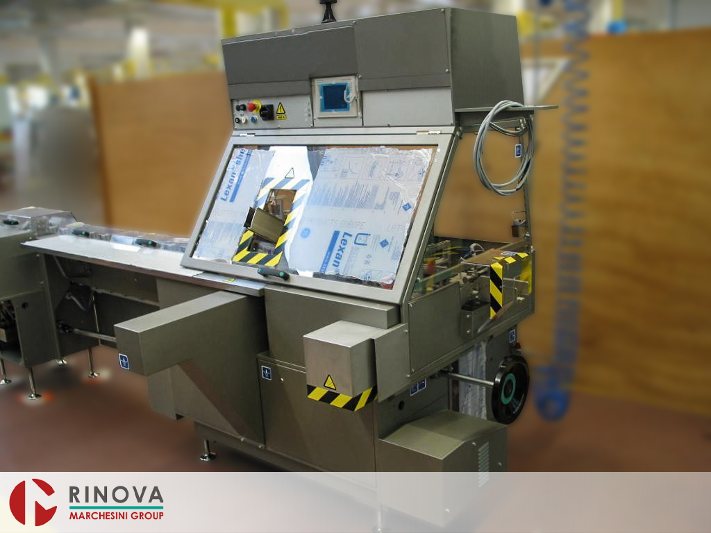 The Marchesini BA50 is an automatic intermittent motion horizontal cartoning machine for sachets. Suitable to pre‑break and to open three-flap straight or reverse tuck-in cartons, insert product, which has been delivered to the infeed bucket chain, close cartons and discharge
