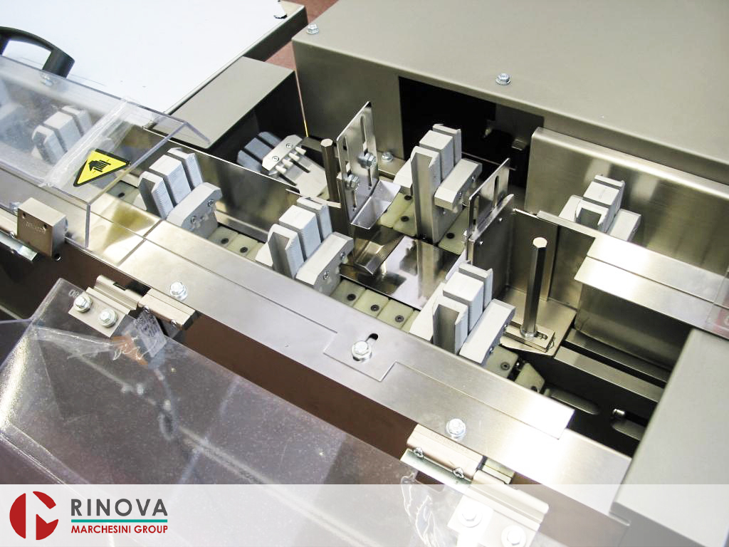 • After the closing operation the rake pushes the carton to the discharge guides.